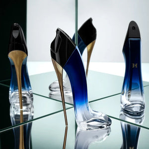 GOOD GIRL EDP Légère presents a luminous evolution of the iconic fragrance, embodying the duality of feminine power. This sophisticated scent captures the essence of a modern femme fatale with its lighter, fresher profile. The stunning bottle transitions from transparent base to midnight-blue crown, symbolizing the journey from day to night. Featuring exquisite Jasmine Sambac Imperial, refined Tonka, creamy woods, and velvety Dulce de Leche, this ultra-feminine fragrance radiates confidence while maintaining captivating allure. The gold stiletto design remains, now infused with a new seductive personality—perfect for the woman who embraces both her good and bad sides with elegant audacity.