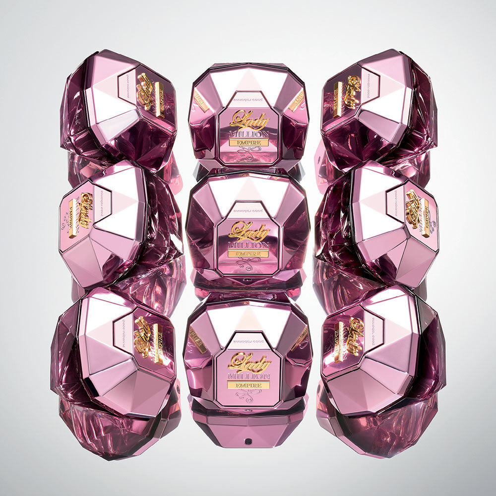 Lady Million Empire perfume for women. Ultra-cheeky Cyprus floral signature by Paco Rabanne. How to build an empire? She dictates her rules. And reigns without sharing. Power girl. She is daring. At all times. And wants destiny. Right now. Critics, she mocks. Diamonds: she crushes them. Lady Million Empire perfume. Brilliant magnolia flowers on a cognac addiction. A deliciously insolent fragrance. The thrill of success...